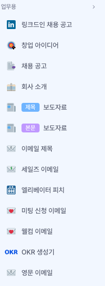 그 외에도 쇼핑몰을 운영하는 분들이 상세페이지나 제품 소개를 편하게 작성하게 하기 위한 툴도 제공하고 있습니다. 회사 이메일을 대신 작성해줄 수도 있습니다.