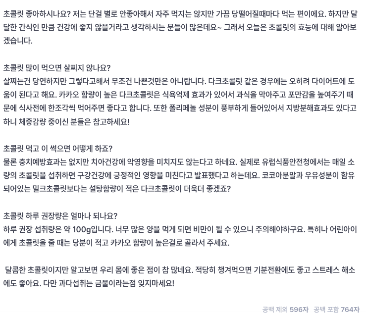 초콜릿 효능으로 긴 블로그 포스팅을 해달라고 부탁해봤습니다.