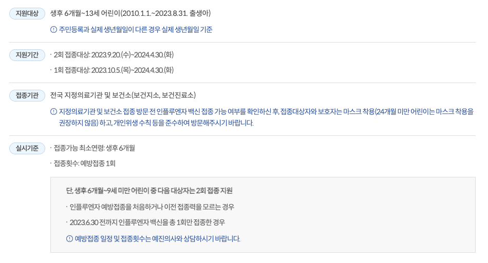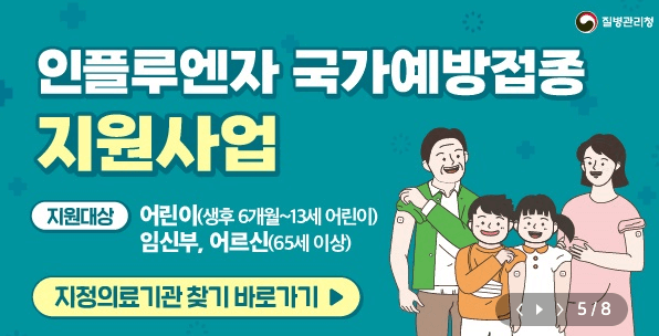 어린이의 경우 무료 독감예방접종은 9월 5일부터 진행중이기 때문에 아직 맞지 않은 아기의 보호자 분이시라면 지금 당장 신청하시면 됩니다.